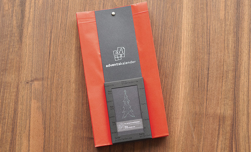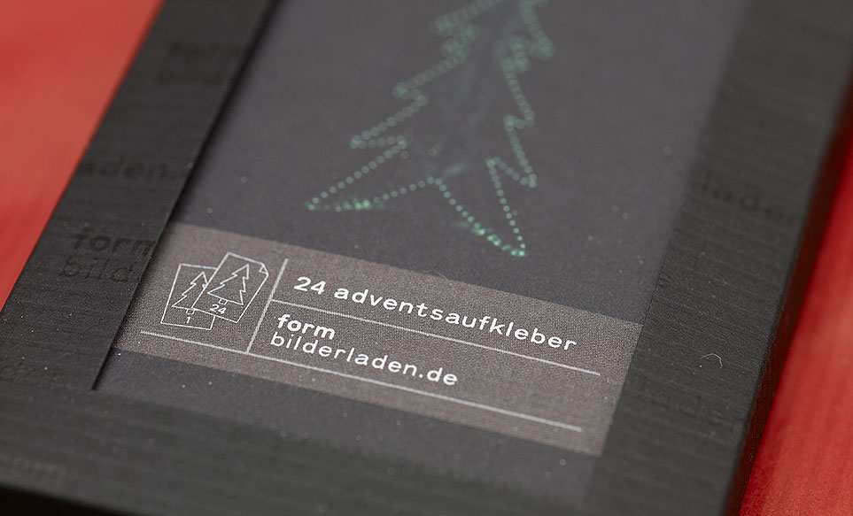 Bestehend aus 24 Aufklebern mit Weihnachtsbäumen à 7 x 10,8 cm, durchnummeriert von 1–24.